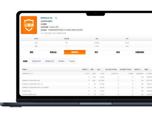 一键穿透目标企业目标商品的跨国供应链,清晰掌握其采购/销售频率、凯发k8国际的合作伙伴及产品流向,对目标企业进行深度评估,为精准营销与定价策略提供数据支撑