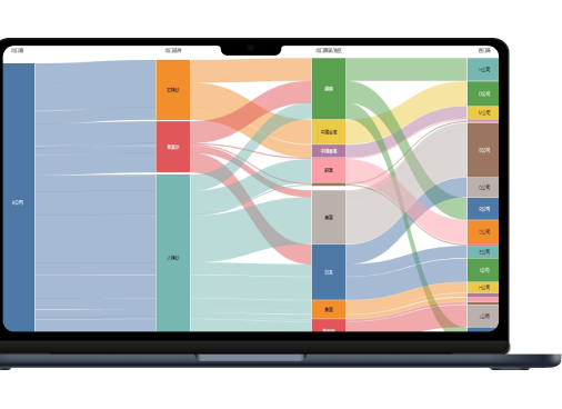在同一查询条件内,对指定进口商在全球范围内的进口来源国和供应商进行无限不循环追踪,对指定出口商在全球范围内的出口目的国和客户进行无限不循环追踪,对目标企业的全球供应链脉络一网打尽。
